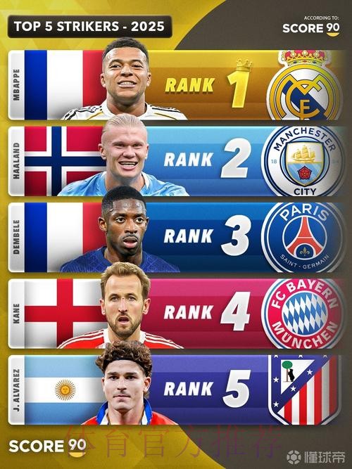 德转评2025年度最佳中锋名单:登贝莱&哈兰德等